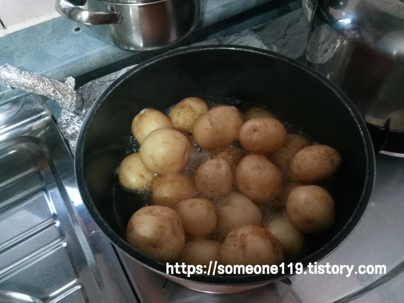 소금 살짝 뿌려서 쪄먹어보았습니다.